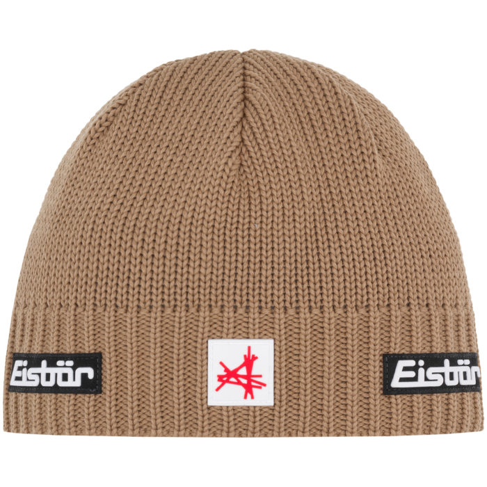Czapka EISBAR Trop MÜ SA (beżowa / kamel) – klasyczny model. Prosty design, 50% wełny merino, opaska polarowa z recyklingu. Idealna na co dzień i do sportów zimowych.