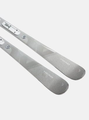 Narty są zintegrowane z lekkimi wiązaniami **HEAD JOY 9 GW SLR**, które oferują **bezpieczeństwo, efektywność** oraz kompatybilność z butami narciarskimi w standardzie **GripWalk (GW)**.