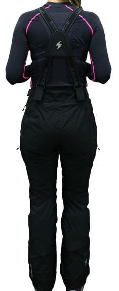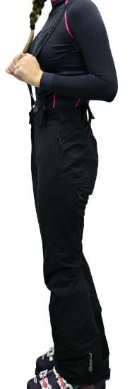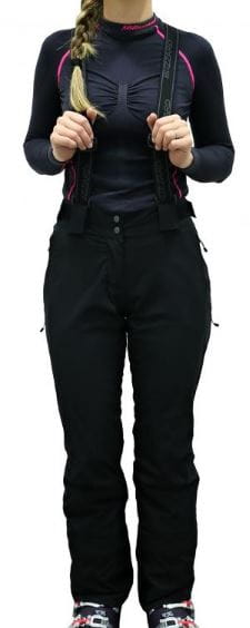 Damskie spodnie narciarskie z regulowanymi szelkami.