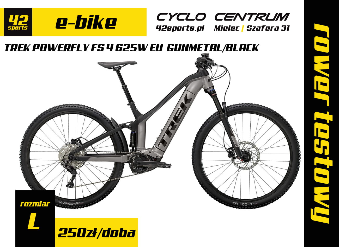 TESTOWY elektryczny rower górski TREK POWERFLY FS 4 625W EU GUNMETAL/BLACK GEN2 R23 rozm. L