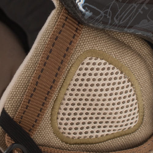 Kask z miękkimi parcianymi uszami.