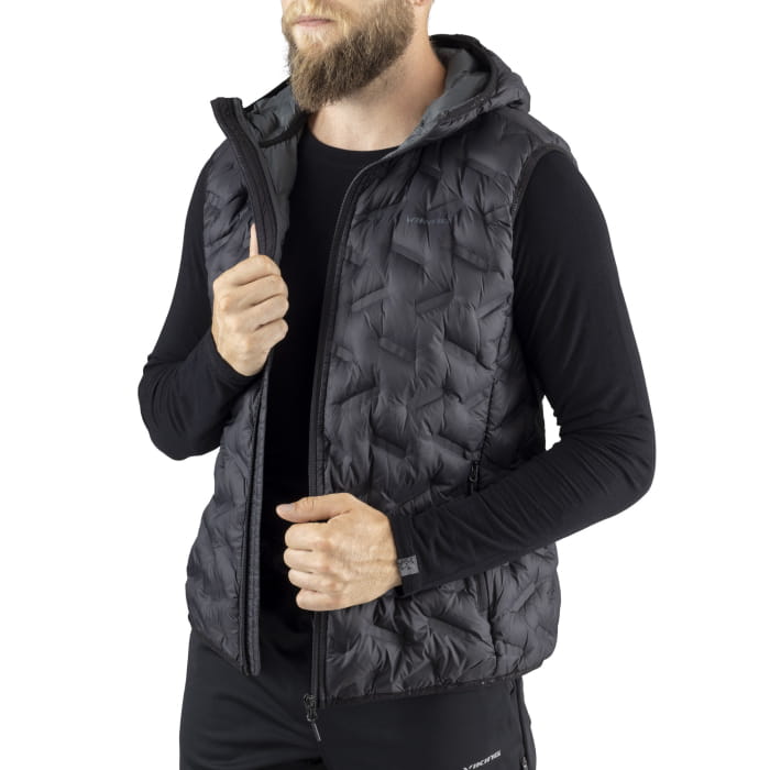 Kamizelka Viking Aspen to wersja bestsellerowej puchowej kurtki o ten samej nazwie. Przede wszystkim posiada certyfikat Responsible Down Standard co oznacza, że puch znajdujący się wewnątrz został pozyskany bez szkody dla zwierząt. W jego skład wchodzi 90% puchu o sprężystości 650 cuin i 10% pierza. Dzięki zgrzewanemu pikowaniu ograniczona została strata temperatury przez szwy, która może występować w miejscu klasycznych szwów. Co więcej rozwiązanie takie zapobiega w przedostawaniu się puchu na zewnątrz. Kamizelka odznacza się oryginalnym designem. Gwarantuje doskonałe parametry termiczne. Posiada dwie boczne kieszenie zapinane na zamek oraz kaptur. Jest lekka i pakowna przez co zabranie jej do plecaka lub torby nie stanowi problemu.
