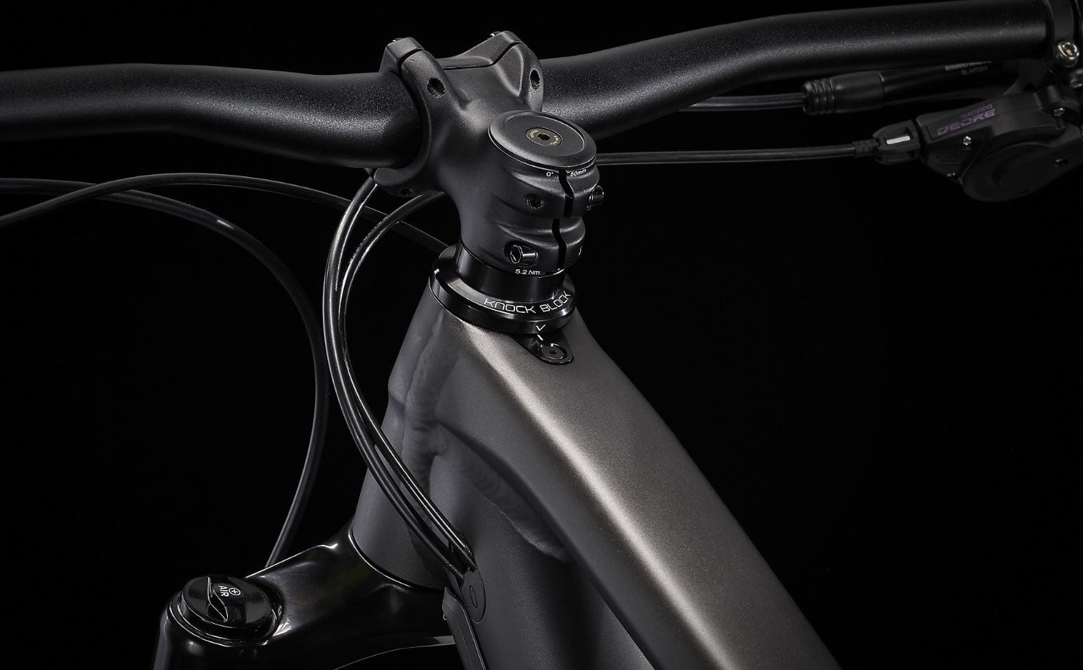 Lekka rama aluminiowa z Knock Block nie pozwala się obrócić kierownicy i chroni przed uszkodzeniem ramy. Widelec RockShox Recon Silver o skoku 140 mm, 130 mm skoku z tyłu dzięki damperowi X-Fusion Pro 2, wytrzymały 12-biegowy napęd Shimano Deore, regulowana sztyca podsiodłowa i hydrauliczne hamulce tarczowe.