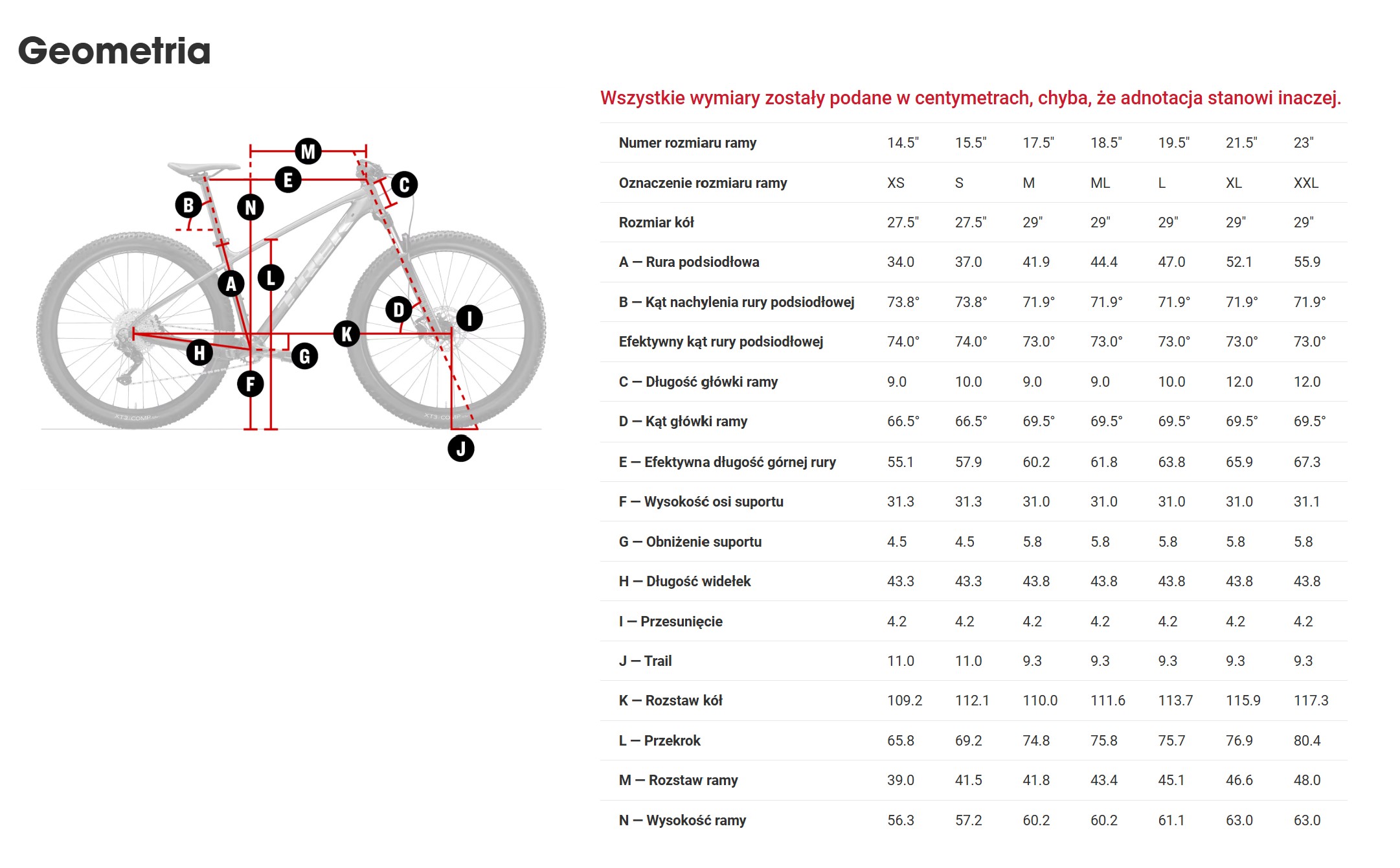 Masy rowerów i ram zostały podane dla pomalowanych ram w wersji przedprodukcyjnej w momencie publikacji. Masy w finalnej wersji produkcyjnej mogą się różnić.