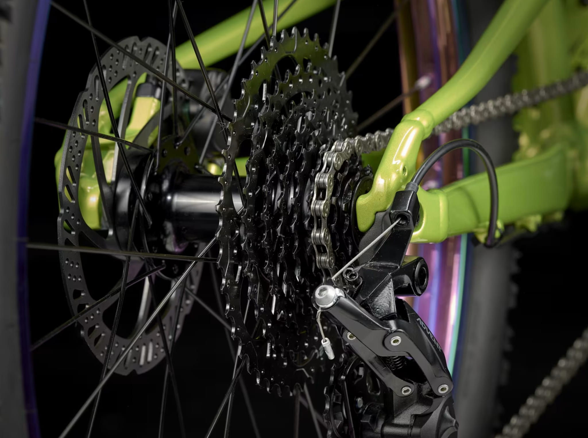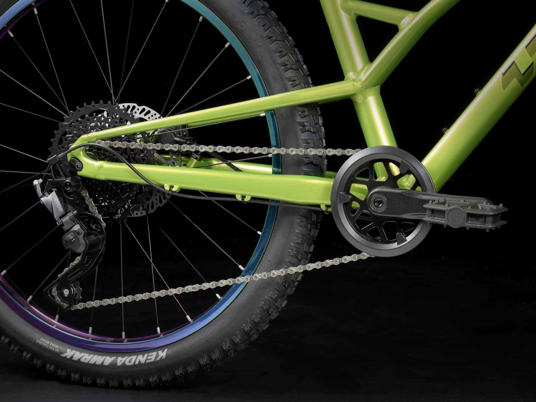 Rama z Alpha Silver Aluminium z kołami 24-calowymi obutymi w szerokie na 2,4 cala opony o wydatnym bieżniku, który niezawodnie wgryza się w grunt. Mnóstwo przełożeń 9-biegowego napędu 1x microSHIFT i konkretna moc hamowania hydraulicznych hamulców tarczowych.