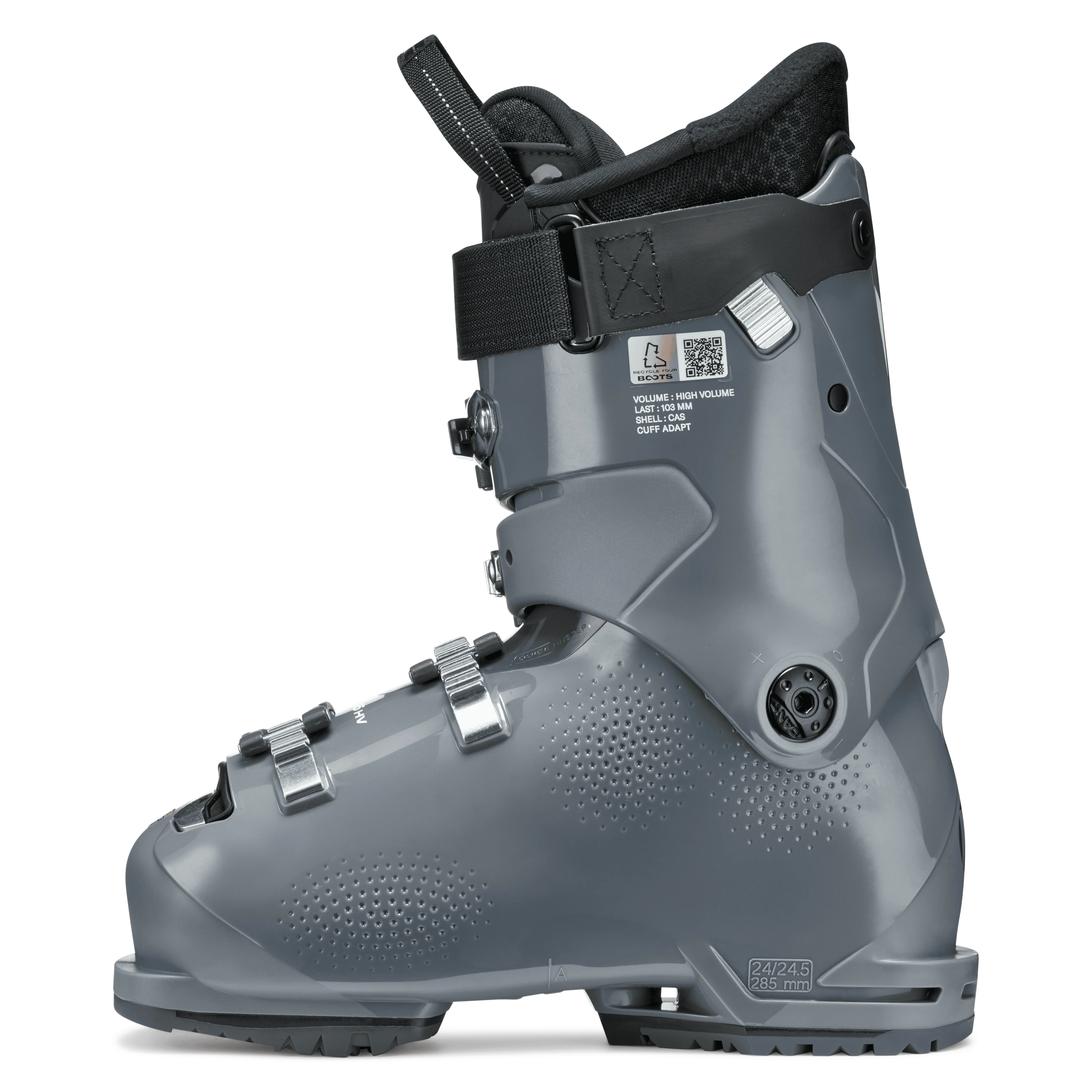 - Skorupa HV (High Volume): Szerokość 103 mm zapewnia przestrzeń i komfort dla kobiet z dużą objętością stopy.